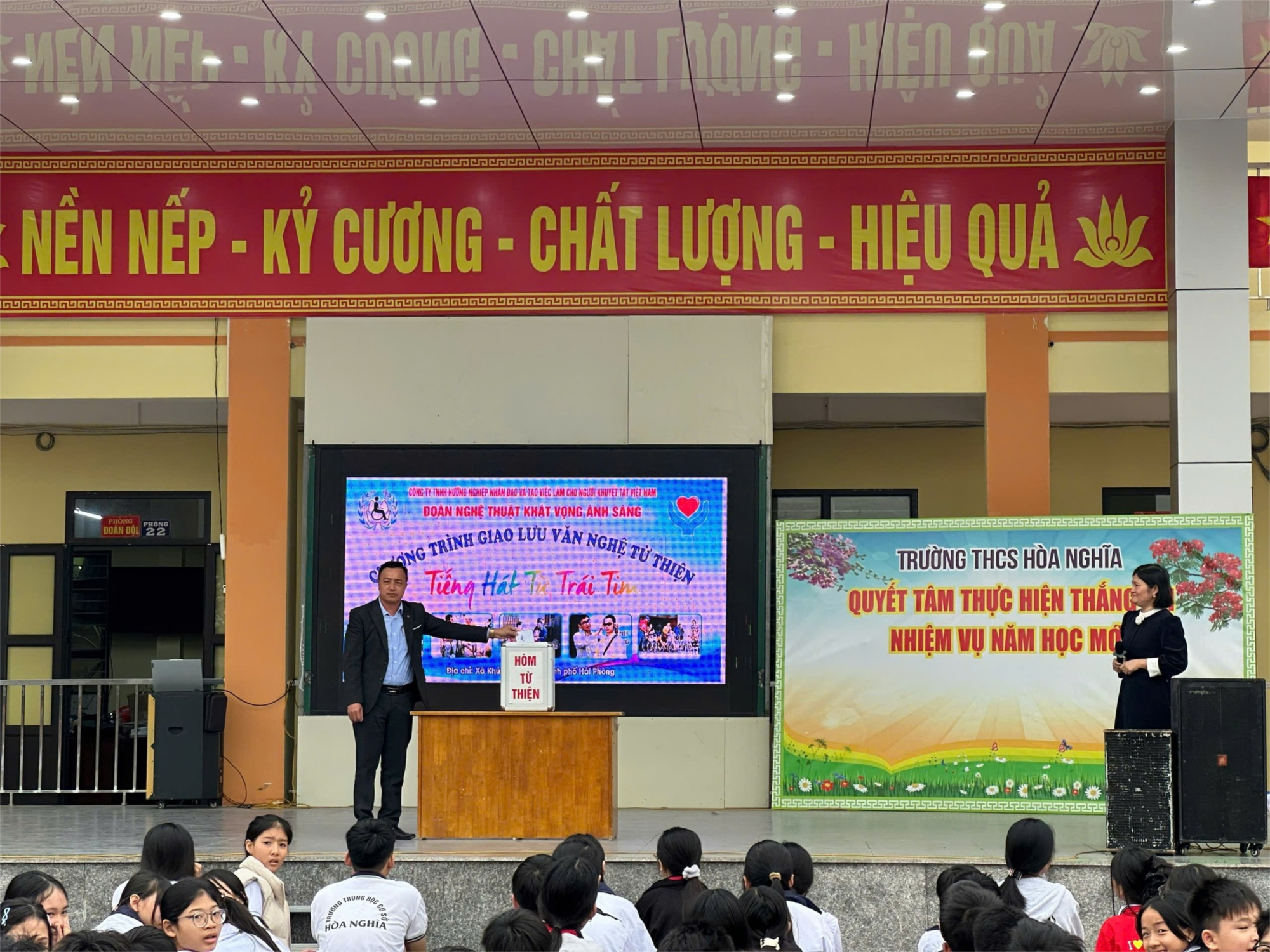 Thực hiện Công văn chỉ đạo của UBND phường Dương Kinh về việc giao lưu văn nghệ với người khuyết tật. Hôm nay ngày 11/12 cán bộ, giáo viên, nhân viên, học sinh trường THCS Hòa Nghĩa đã tham gia giao lưu với người khuyết tật và có tinh thần ủng hộ, sau đây là một số hình ảnh: