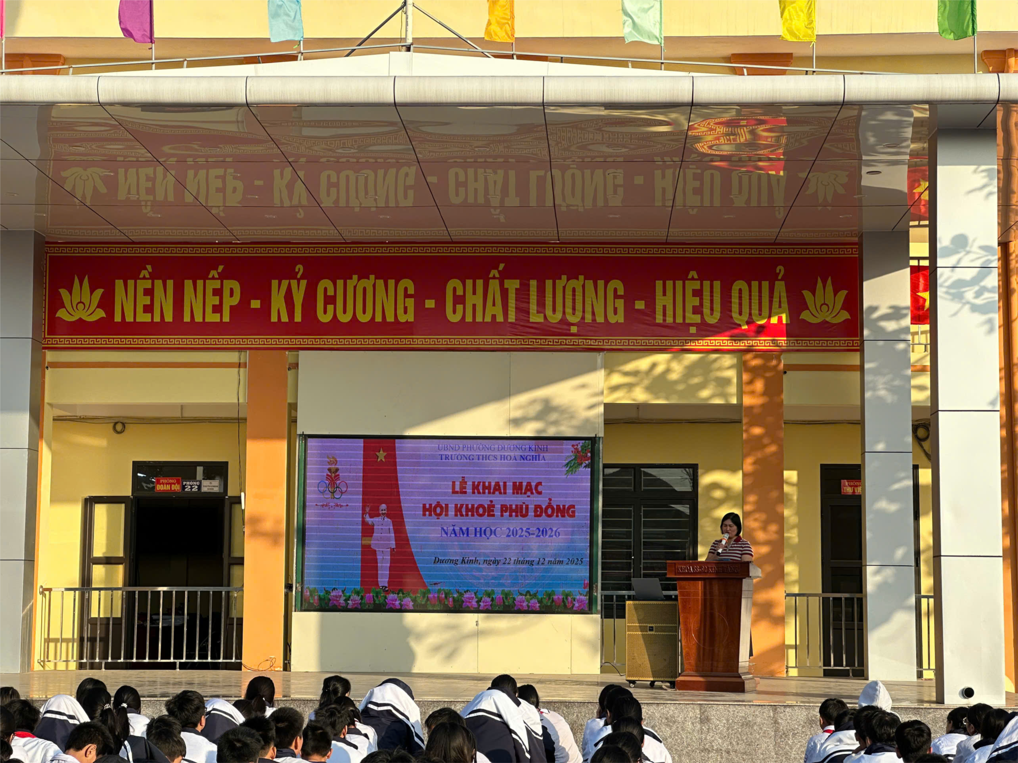 Trường THCS Hoà Nghĩa long trọng tổ chức Lễ Khai mạc Hội khoẻ Phù Đổng, mở đầu cho chuỗi hoạt động thể dục thể thao sôi nổi của học sinh toàn trường như kéo co, cờ vua, chạy, ... Hội khoẻ là sân chơi bổ ích, góp phần rèn luyện sức khoẻ, phát triển thể chất, bồi dưỡng tinh thần đoàn kết, trung thực và cao thượng; đồng thời phát hiện, bồi dưỡng những học sinh có năng khiếu thể thao: