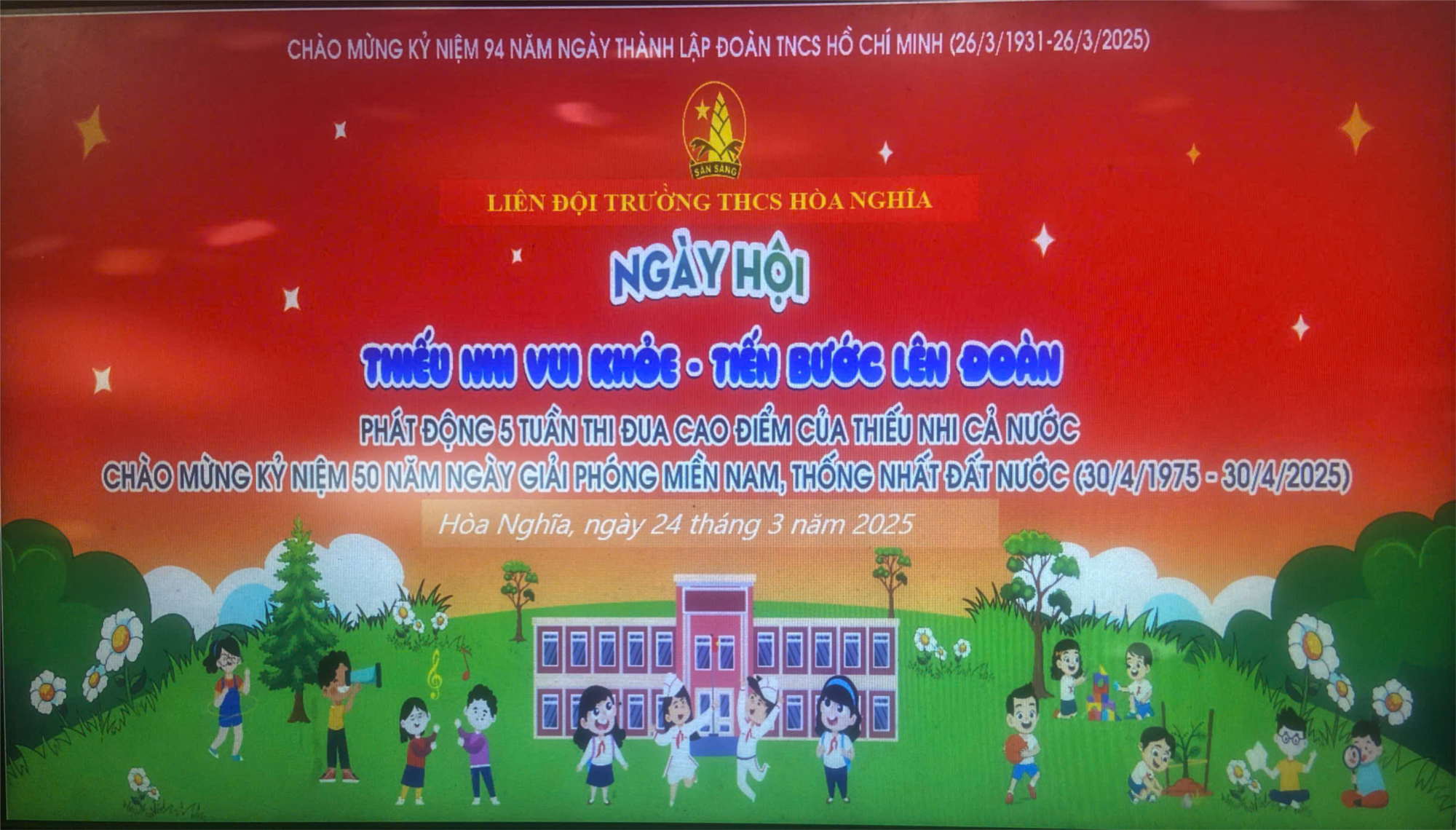 Thứ 2, ngày 24/3/2025, Liên đội trường THCS Hòa Nghĩa đã được tổ chức thành công Ngày hội "Thiếu nhi vui khỏe – Tiến bước lên Đoàn" với không khí sôi động và đầy ý nghĩa. Đây là hoạt động thường niên chào mừng 94 năm ngày 26/3 – Ngày Thành lập Đoàn TNCS Hồ Chí Minh, giúp đỡ các em đội viên, thiếu nhi nâng cao nhận thức về truyền thống vẻ vang của Đoàn và luyện sức khỏe.