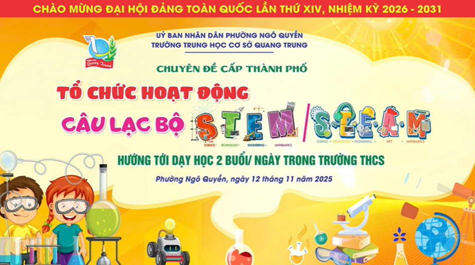 Nhằm định hướng đổi mới phương pháp dạy học đáp ứng chương trình giáo dục phổ thông 2018; khuyến khích giáo viên đổi mới, sáng tạo trong dạy học. Sở GDĐT chỉ đạo và hướng dẫn trường THCS Quang Trung (Phường Ngô Quyền) tổ chức Hội thảo chuyên đề: “Tổ chức hoạt động Câu lạc bộ STEM/STEAM hướng tới dạy học 2 buổi/ngày trong trường THCS”. Cụ thể như sau: