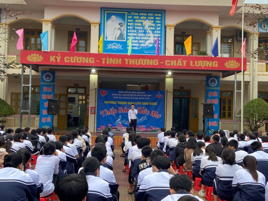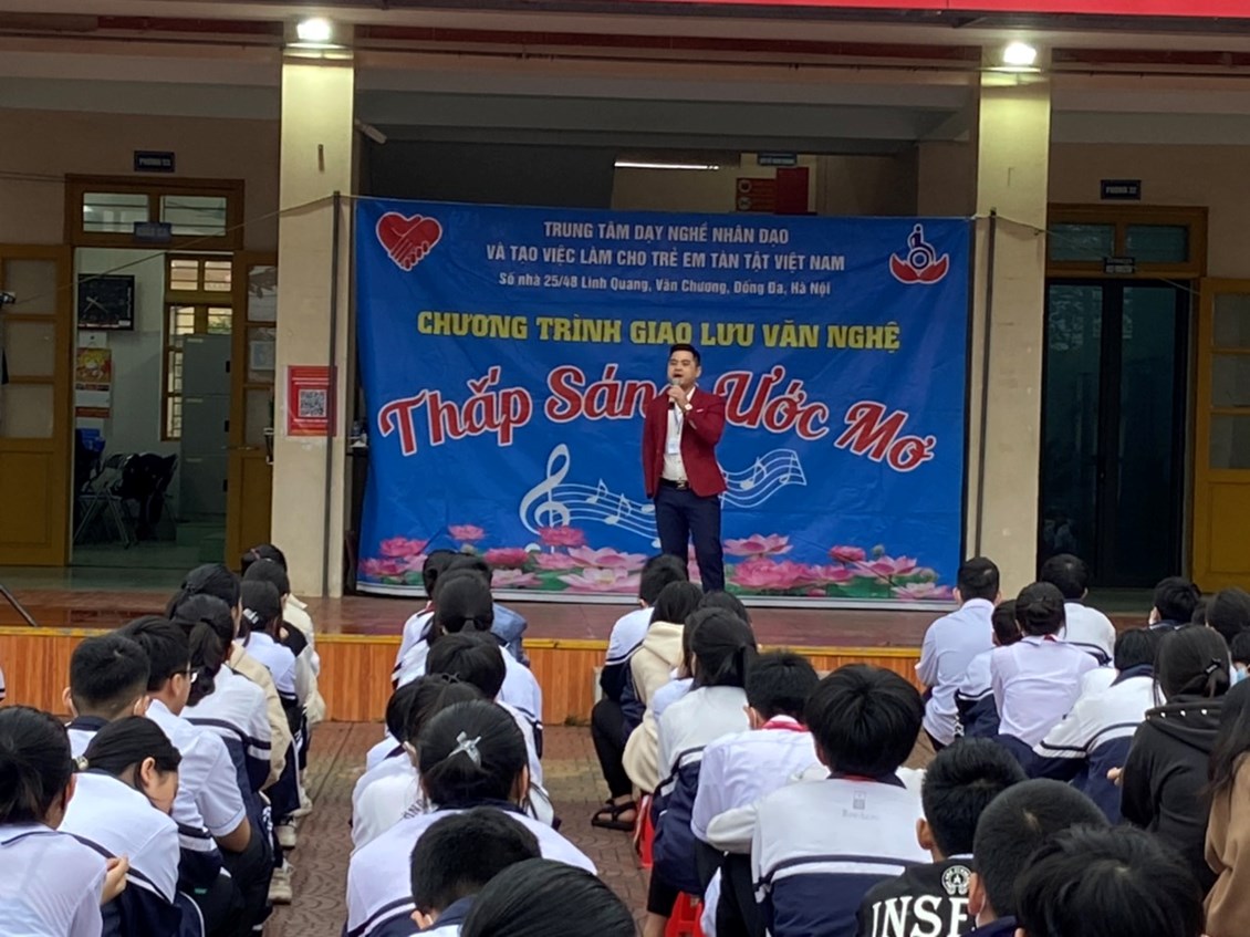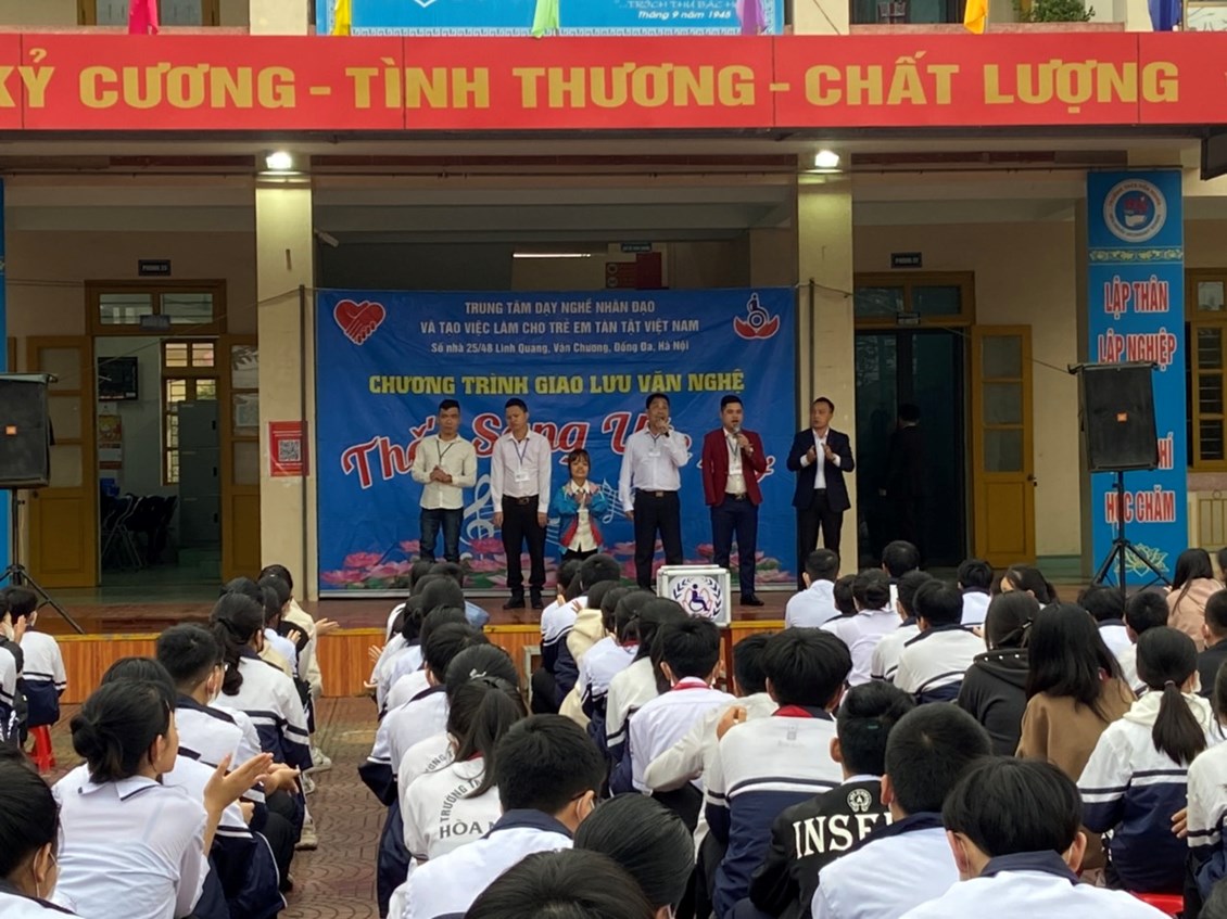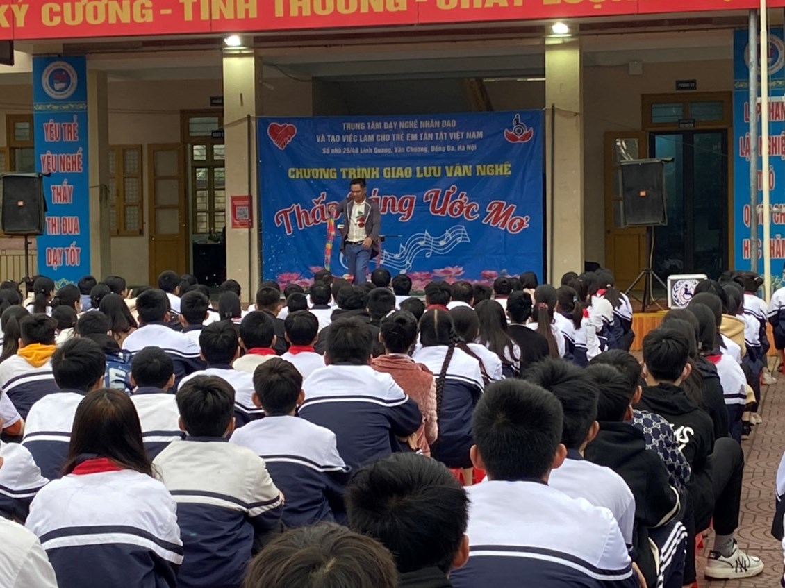 Ngày 11/2/2023, trung tâm dạy nghề nhân đạo và tạo việc làm cho trẻ em tàn tật Việt Nam thực hiện Chương trình “Giao lưu văn nghệ thắp sáng ước mơ” tại THCS Hòa Nghĩa. Đây là hoạt động nhân đạo, từ thiện, có tính nhân văn sâu sắc, được toàn thể CBQL, GV, NV và học sinh nhà trường tích cực hưởng ứng, ủng hộ. Sau đây là một số hình ảnh chương trình: