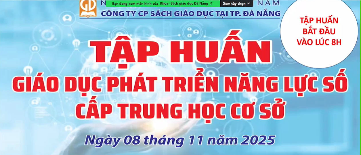 Căn cứ Công văn số 316/CV-DAE ngày 29 tháng 10 năm 2025 của Công ty cổ phần sách giáo dục tại thành phố Đà Nẵng về việc phối hợp tập huấn Công tác Giáo dục Phát triển Năng lực số cấp Tiểu học và cấp Trung học cơ sở. Để tổ chức và triển khai có hiệu quả việc phát triển năng lực số cho học sinh trung học cơ sở, Sở Giáo dục và Đào tạo phối hợp với Công ty cổ phần sách giáo dục tại thành phố Đà Nẵng - Nhà xuất bản Giáo dục Việt Nam tổ chức tập huấn công tác giáo dục phát triển năng lực số cho học sinh trung học cơ sở, cụ thể như sau: