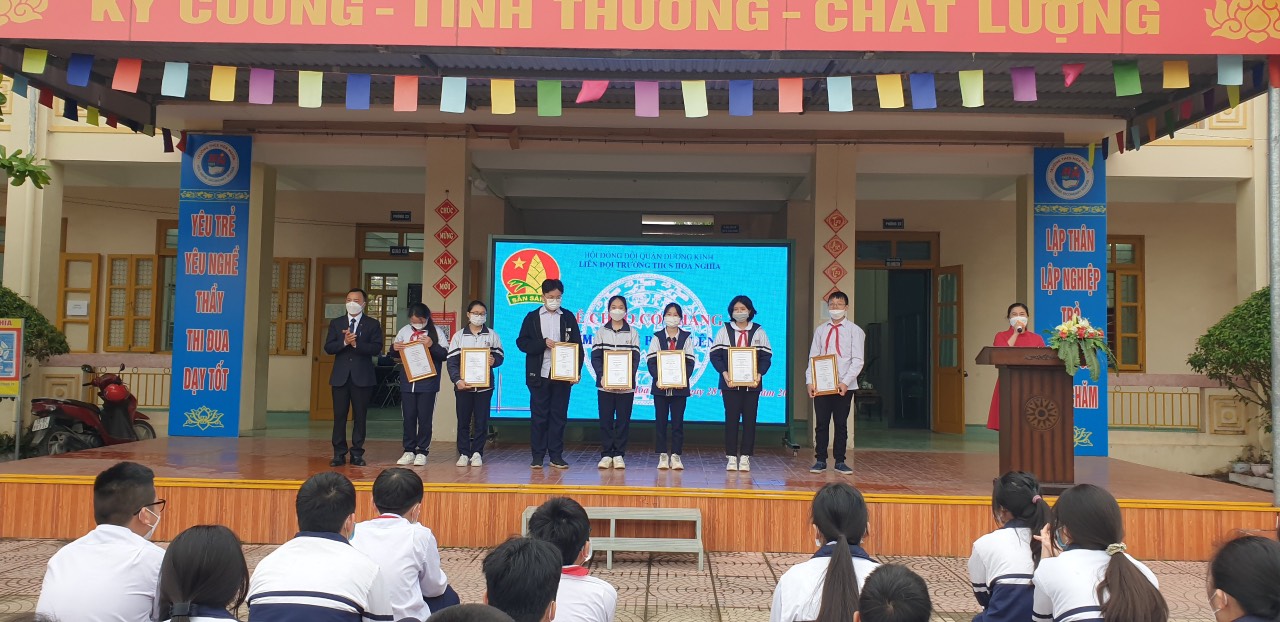 Trường THCS Hòa Nghĩa trao chứng nhận cho học sinh có thành tích
