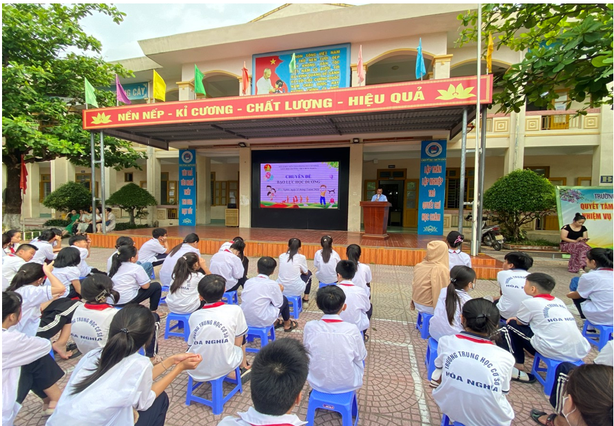 Qua giờ sinh hoạt dưới cờ, siinh hoạt lớp, giáo dục với chủ đề “Xây dựng tình bạn đẹp - nói không với bạo lực học đường”, học sinh liên đội THCS Hòa Nghĩa đã được trang bị thêm nhiều bài học bổ ích để nhận diện, lên án những hành vi bạo lực học đường và cùng nhau bồi đắp tình bạn thắm thiết. Mong rằng trường THCS Hòa Nghĩa thân yêu sẽ mãi là “Trường học hạnh phúc”, là ngôi nhà của những tình bạn đẹp.